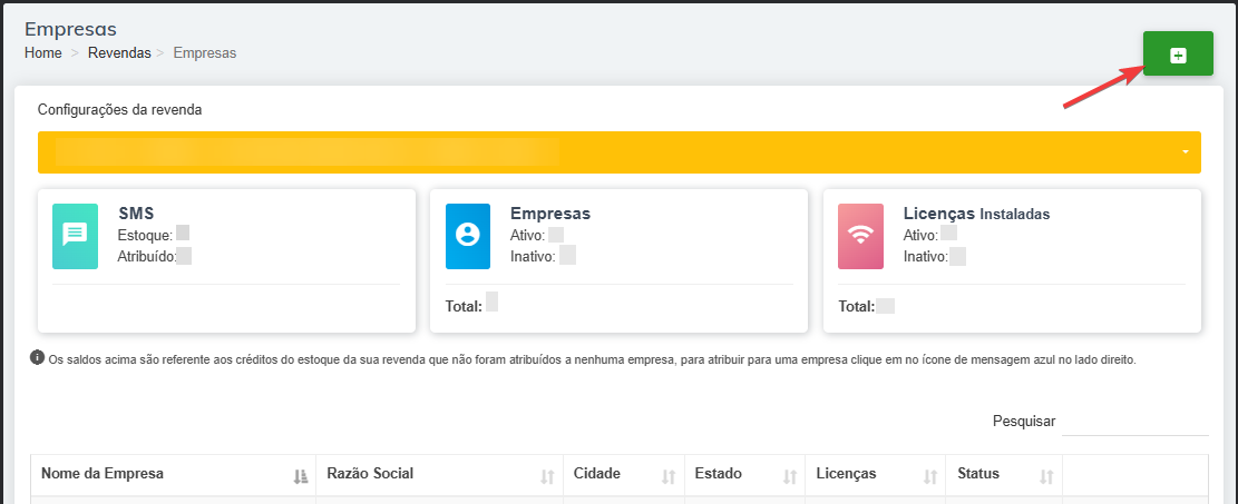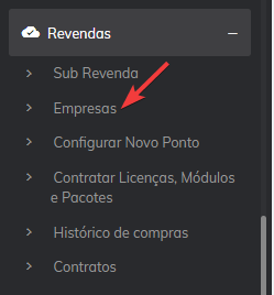 Em seu painel administrativo, vá ao menu Revendas > Empresas.