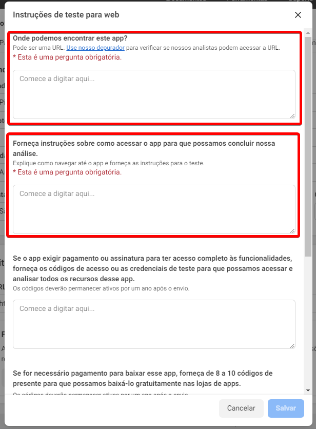 Responda essas duas perguntas para que seu aplicativo seja analisado e aprovado pela meta, ficando disponível para uso.