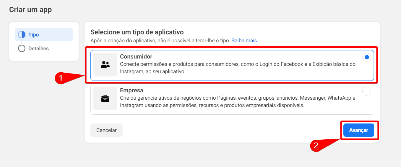 Selecione o tipo 'Consumidor' e clique em avançar.