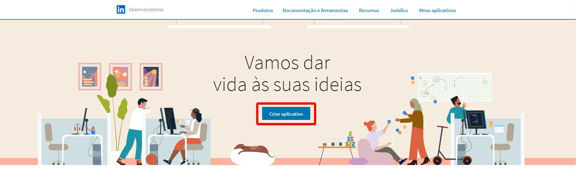 Você será levado para a Central de desenvolvedores, onde deverá clicar em Criar Aplicativo.