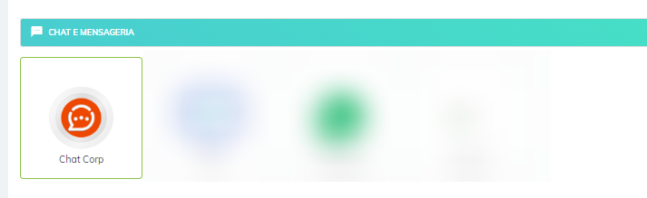 Em seu painel administrativo, vá ao menu Integrações e clique na integração do Chat Corp, ele fica na aba "Chat e Mensageria".