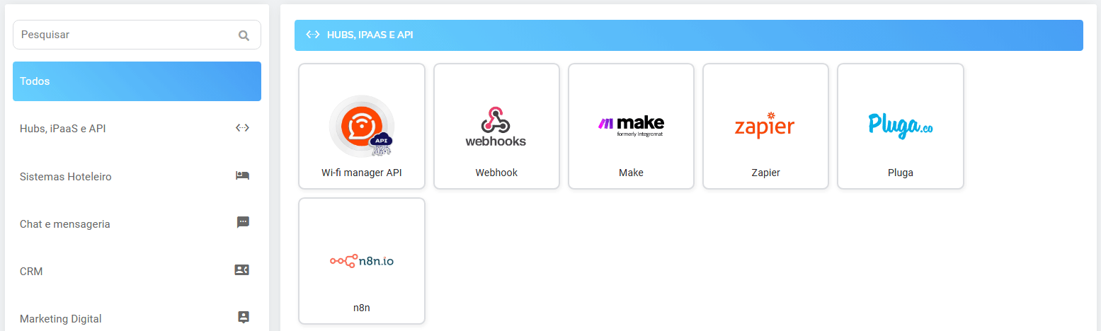 Obs: Algumas integrações estão inclusas apenas no plano Gold. Para fazer um Upgrade de seu plano, clique aqui.