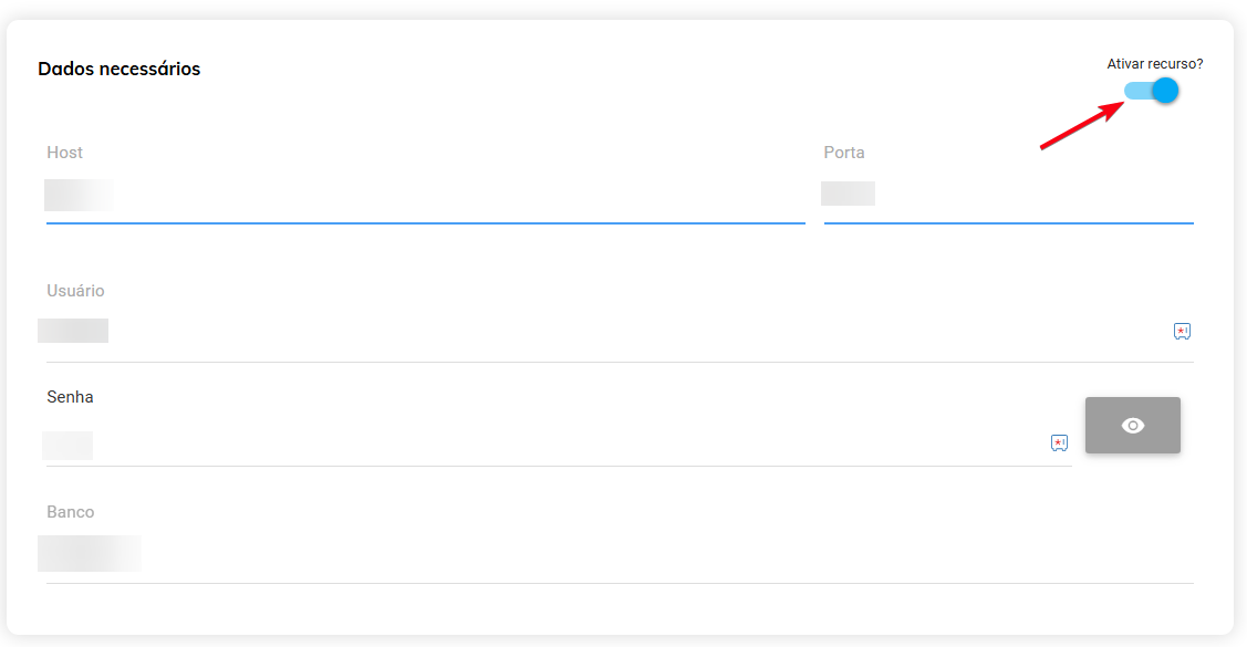 Os dados utilizados na integração, devem ser solicitados pelo Hotel para a empresa Erbon Software Brasil. Com os dados em mãos, preencha os campos abaixo e habilite a chave Ativar Recurso?.