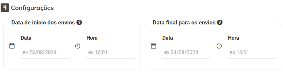 No passo 4, você pode definir as datas de início e fim da campanha, mas isso é opcional.