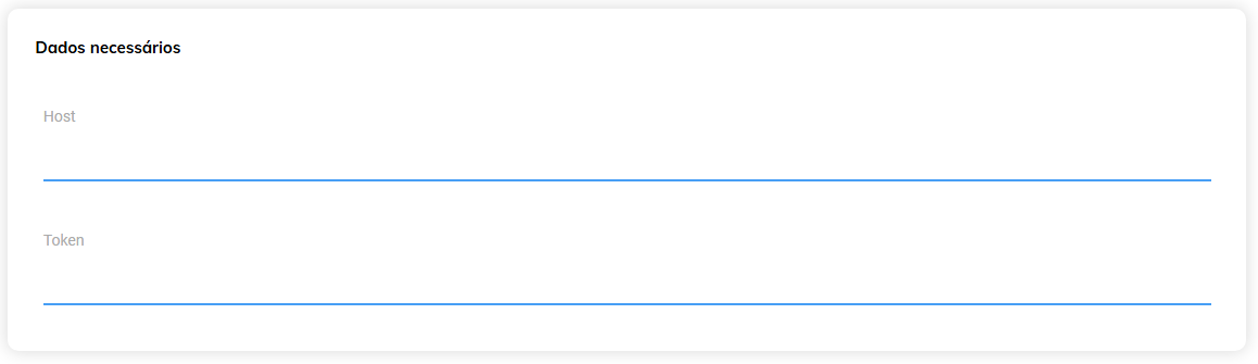 Na nova tela, leia as informações e preencha os campos de 'Host' e 'Token' em 'Dados necessários'. Clique fora dos campos para salvar automaticamente.