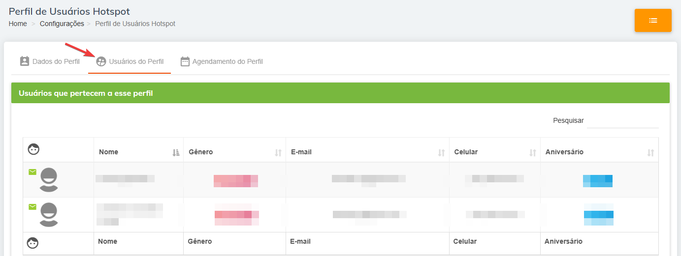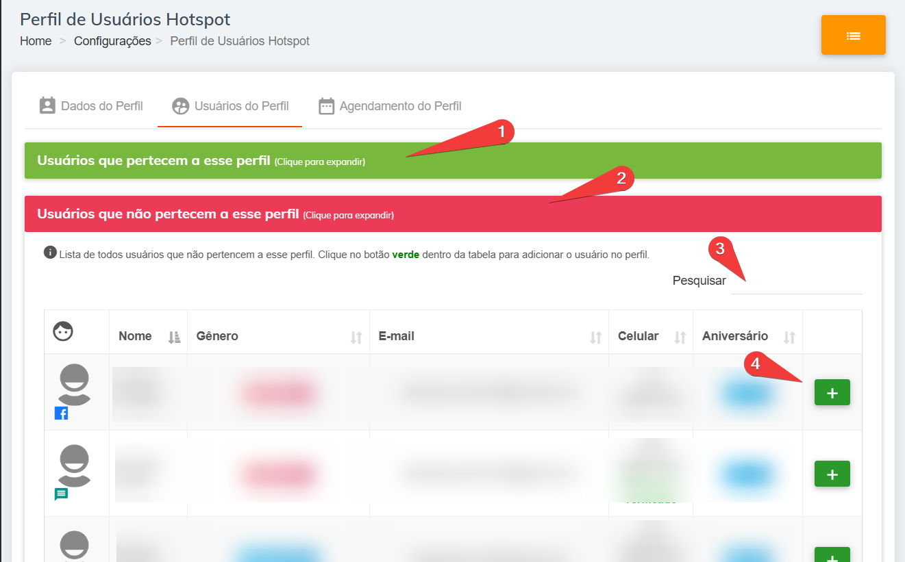 2- Usuários que não pertencem a esse Perfil: Aqui será exibido os usuários que não estão dentro do perfil, onde é possível adiciona-los para que nas próximas conexões eles estejam dentro desse perfil com as regras dele.