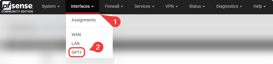 4. Por padrão, o pfSense renomeia a nova interface com o nome OPT1. Vamos configurar esta interface: Interfaces => OPT1