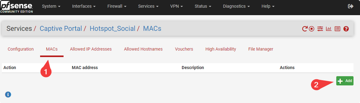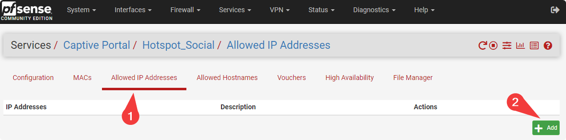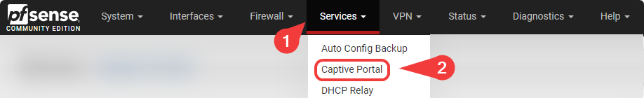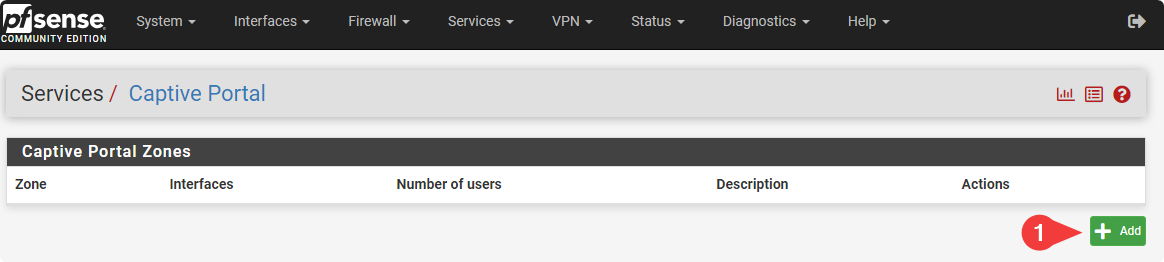 1. Criar um Captive Portal Zone: Services => Captive Portal => + Add