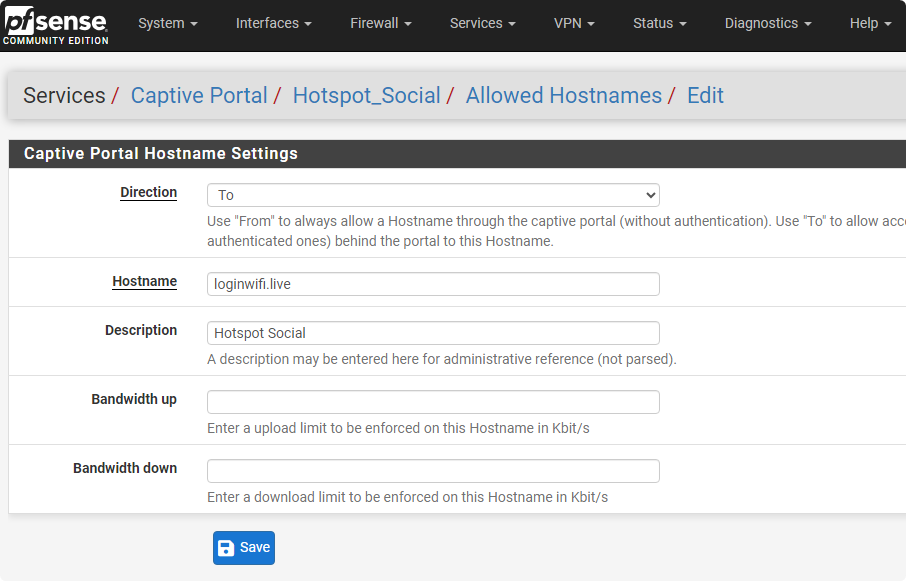 - Backup nunca é demais! Antes de prosseguir com a configuração do Hotspot Social, faça um backup total do seu servidor pfSense. Segue o procedimento na documentação oficial do pfSense: Making Backups in the GUI