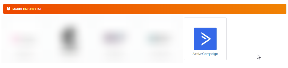Agora que localizou sua URL e sua Chave (API Key), pelo painel do Hotspot, vá no menu integrações e localize o Active Campaign dentro do campo Marketing Digital